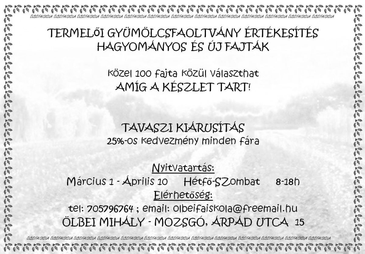 Termelői gyümölcsfaoltvány értékesítés hagyományos és új fajták. Közel 100 fajta közül lehet választani.
