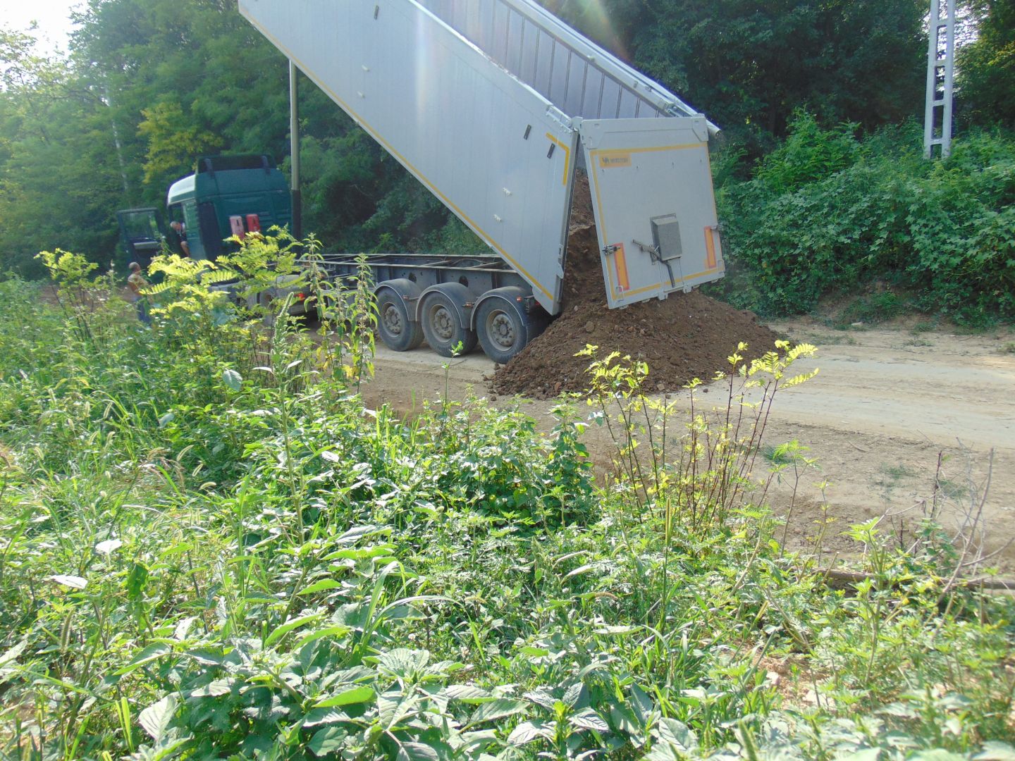 Július hónapban kezdték el az újrahasznosított építési törmelék (tégladarálék) szállítását. A kimélyített útalapba 30-40 cm vastagságban terítik el a darálékot.